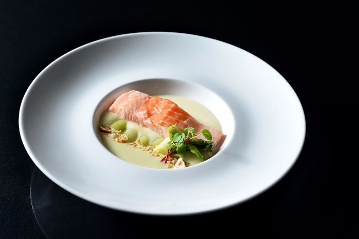 - Saumon cuit à basse température, espuma d'une vichyssoise